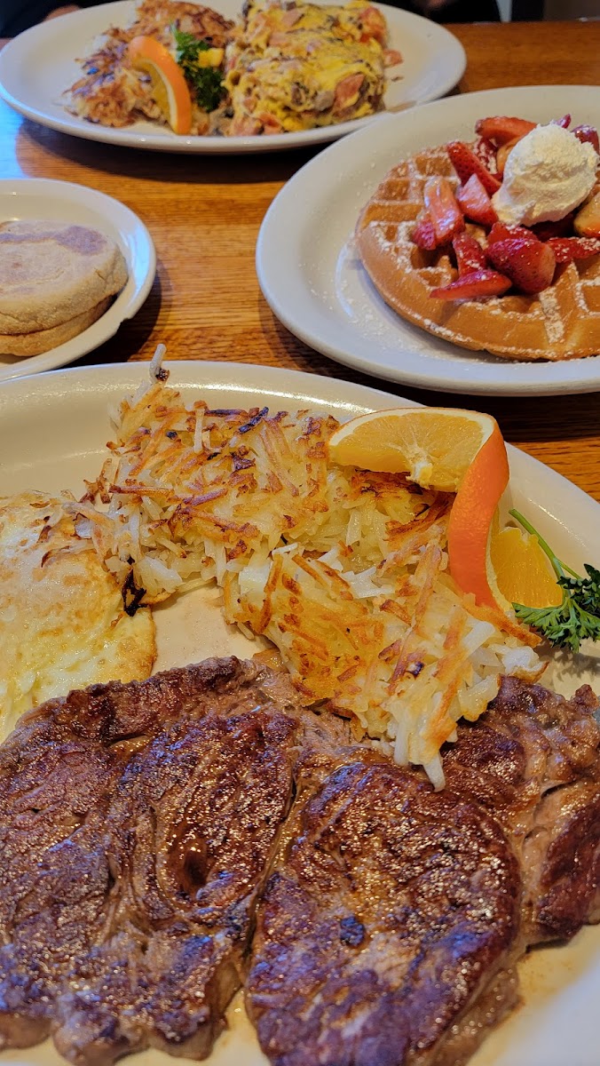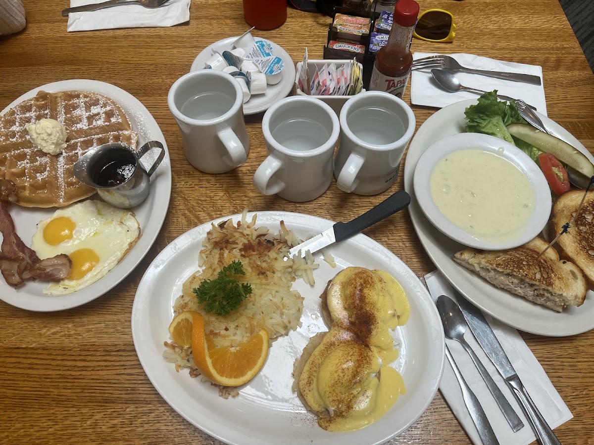 Great American breakfast stop! My family loves stopping here when we are in town, something for everyone on the menu and a good basic cup of coffee. Staff is friendly and there is plenty of seating, but we always try to get there early to avoid a wait!