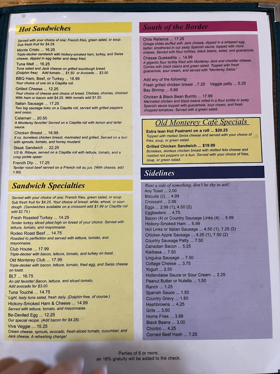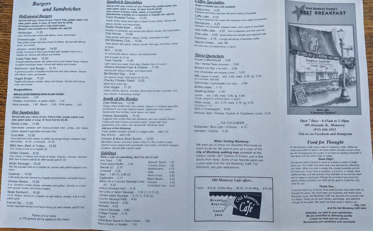 Old Monterey Café Menu