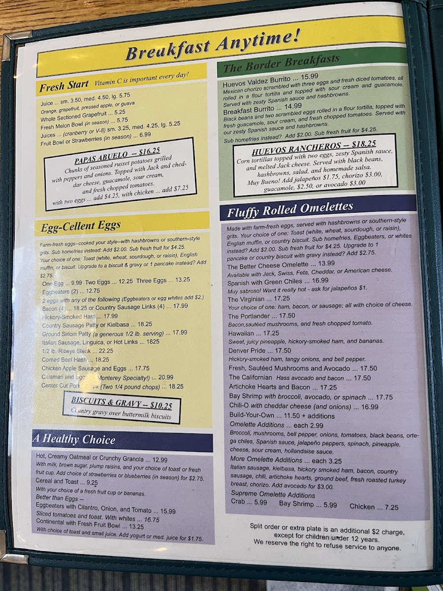 The menu at Old Monterey Café offers a straightforward and comforting selection typical of a classic breakfast spot. It’s a place where simple café favorites meet hearty, familiar dishes crafted to suit mornings and leisurely brunches alike. Expect a variety of prepared-to-order eggs, from omelets to eggs benedict on hash browns, alongside satisfying sides like fresh fruit bowls and homemade salsa.